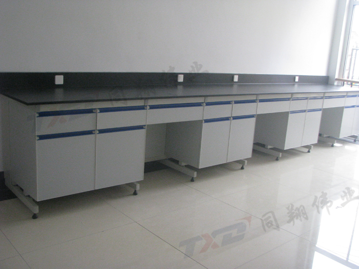 邊臺組成結構:由基柜、臺面板、線槽等組成,臺面板可根據不同需求進行選擇,也可根據不同需求設計不同空人位,空位處內側有可拆裝活動擋板,以便維修電路和安裝,具有最佳的經濟性能比,是現代實驗室的首選產品