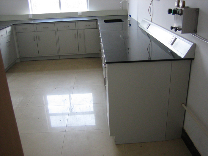 臺面:采用美國威盛亞12.7mm厚實芯理化板,表面經技術處理,光滑無毛孔,耐酸堿、防腐蝕、邊緣加厚至25.4mm,銑邊處理,并在臺面下方開有滴水沿。臺面耐腐蝕、防水均達到實驗室行業優質標準。